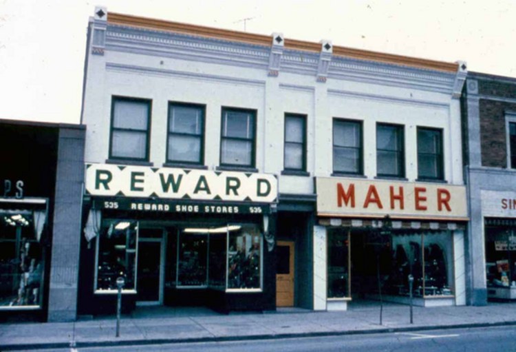 - Queen Street - Sally Shops Ladies' Wear, Reward Shoe Stores, Maher Shoe Stores and the Singer Company of Canada