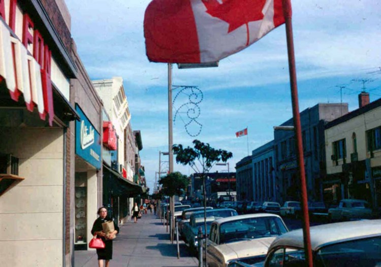 - en-CA Funding for scanning provided by a grant from Historic Niagara Development Inc.. Ostrander's Jewellers and Bata Shoe Store visible on the left. Federal Building and Post Office visible on the right.
