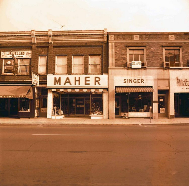 - Queen Street, 521-529 - Mitchell's of Niagara Falls Ladies' Wear, Singer Company of Canada and Maher Shoe Stores