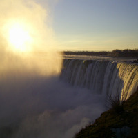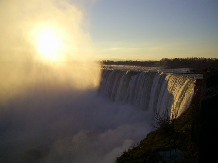 - Sun showing through the mist at the brink of the Horseshoe Falls