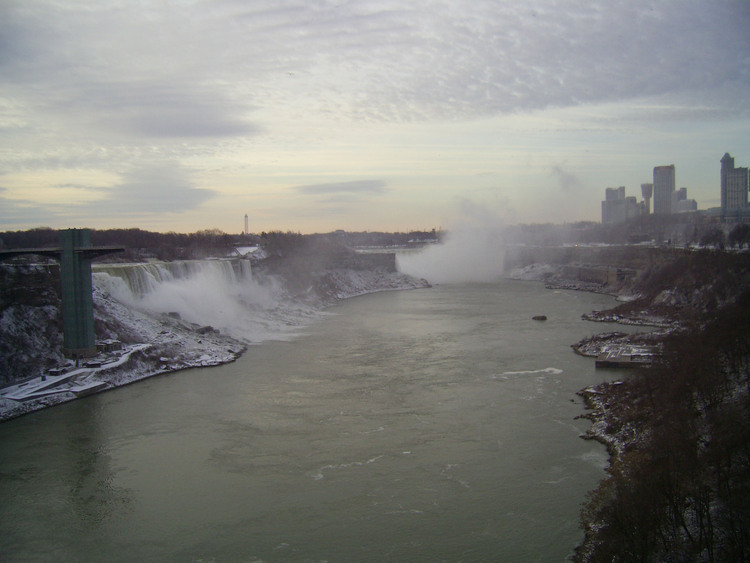 - en-CA Weather conditions in Niagara Falls when the photo was taken: Wind: south, 15 km Temp: -1° C Partly cloudy Time: 8:29 a.m. This photo from Rainbow bridge, where concrete meets steel part of bridge.