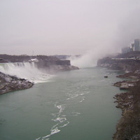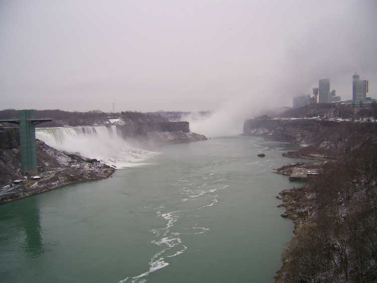 - en-CA Weather conditions in Niagara Falls when the photo was taken: Wind: northeast, 19 km Temp: -2° C Overcast Time: 8:34 a.m. This photo from Rainbow bridge, where concrete meets steel part of bridge.