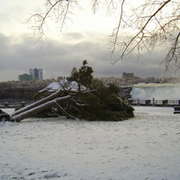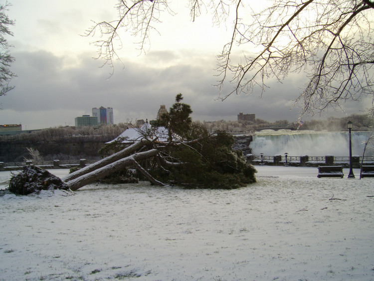 - Uprooted tree in Queen Victoria Park - American Falls in background