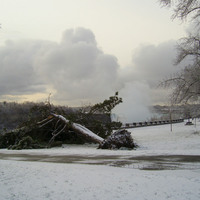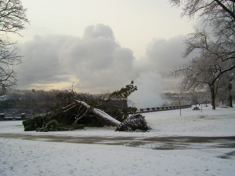 - Uprooted tree in Queen Victoria Park - Horseshoe Falls in background