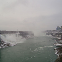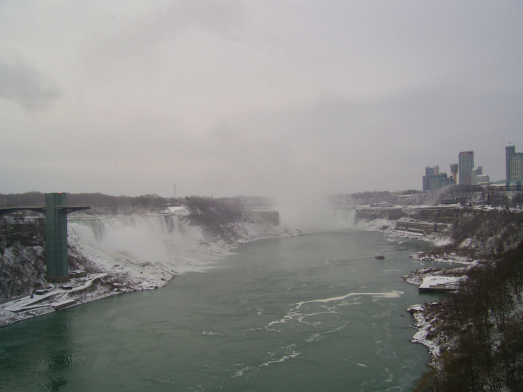 - en-CA Weather conditions in Niagara Falls when the photo was taken: Wind: southwest, 19 km Temp: -1° C Overcast Time: 8:25 a.m. This photo from Rainbow bridge, where concrete meets steel part of bridge.