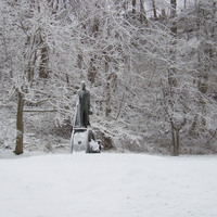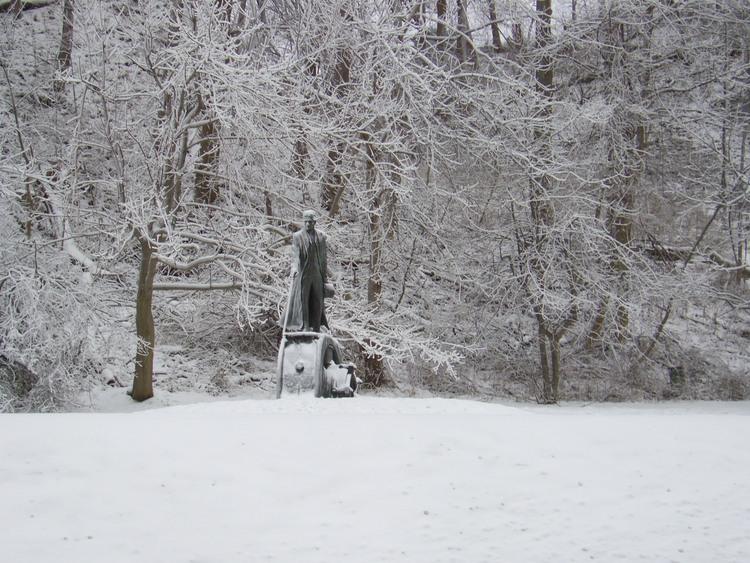 - Statue of Nikola Tesla in Queen Victoria Park with a dusting of snow