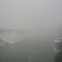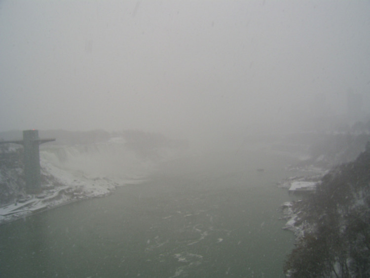 - en-CA Weather conditions in Niagara Falls when the photo was taken: -5º C Snow Time: 8:39 a.m. Wind northeast, 9 km This photo from Rainbow bridge, where concrete meets steel part of bridge.