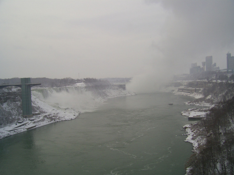- en-CA Weather conditions in Niagara Falls when the photo was taken: -8º C Cloudy Time: 8:25 a.m. Wind southwest, 9 km This photo from Rainbow bridge, where concrete meets steel part of bridge.