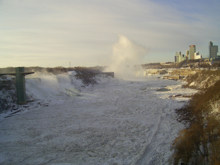 - en-CA Weather conditions in Niagara Falls when the photo was taken: -10º C Mainly sunny Time: 8:22 a.m. Wind west, 28 km, gusts to 39 This photo from Rainbow bridge, where concrete meets steel part of bridge.