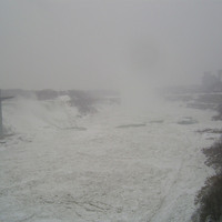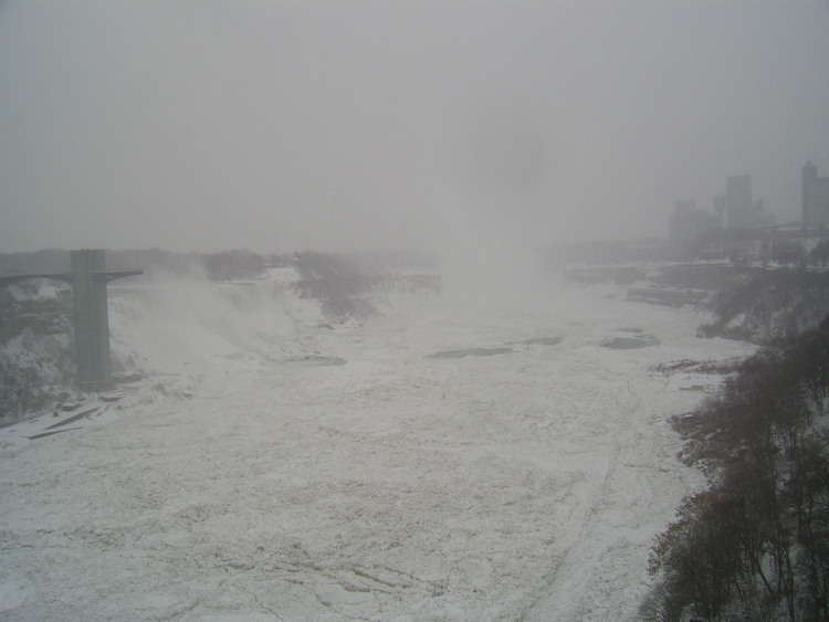 - en-CA Weather conditions in Niagara Falls when the photo was taken: -10º C Light snow Time: 8:23 a.m. Wind southwest, 28 km, gusts to 37 This photo from Rainbow bridge, where concrete meets steel part of bridge.