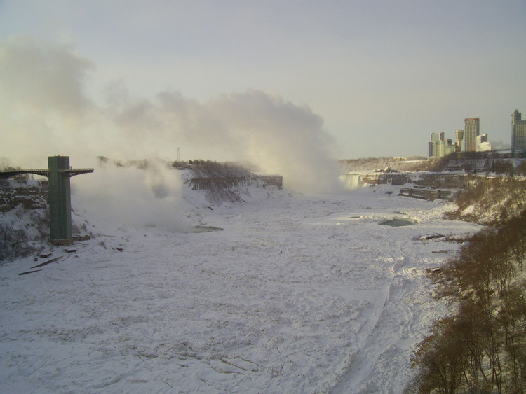 - en-CA Weather conditions in Niagara Falls when the photo was taken: -17º C Sunny Time: 8:28 a.m. Wind southwest, 28 km This photo from Rainbow bridge, where concrete meets steel part of bridge.