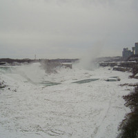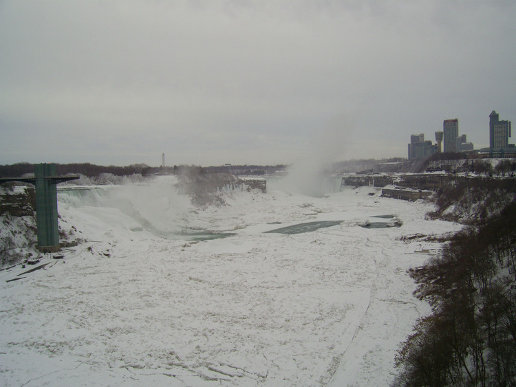 - en-CA Weather conditions in Niagara Falls when the photo was taken: -8º C Overcast Time: 8:34 a.m. Wind east This photo from Rainbow bridge, where concrete meets steel part of bridge.