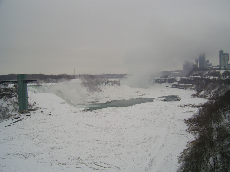 - en-CA Weather conditions in Niagara Falls when the photo was taken: -2º C Overcast Time: 8:22 a.m. Wind east, 6 km This photo from Rainbow bridge, where concrete meets steel part of bridge.