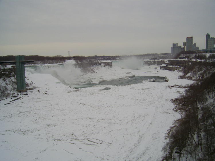- en-CA Weather conditions in Niagara Falls when the photo was taken: -4º C Overcast Time: 8:26 a.m. This photo from Rainbow bridge, where concrete meets steel part of bridge.