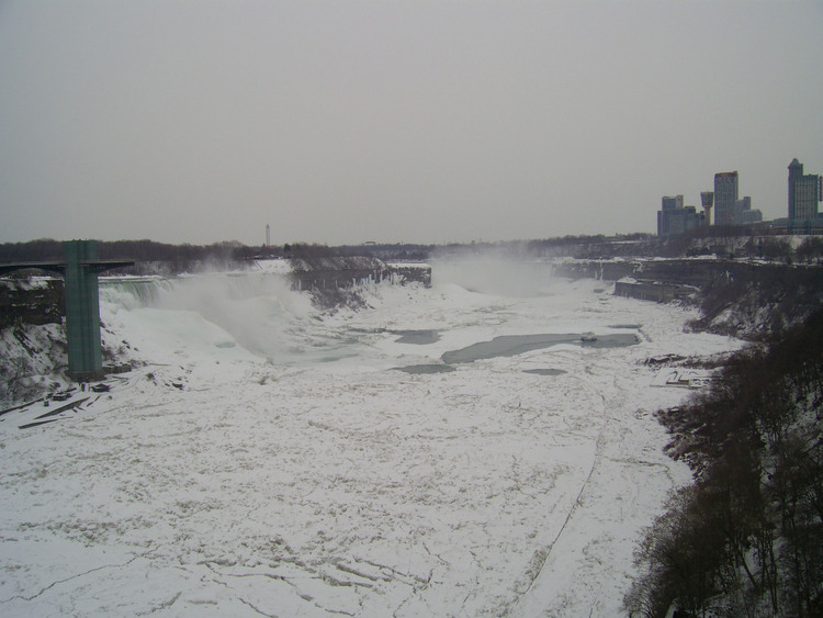 - en-CA Weather conditions in Niagara Falls when the photo was taken: 2º C Overcast Time: 8:15 a.m. Wind southwest, 18 km, gusts to 54 km This photo from Rainbow bridge, where concrete meets steel part of bridge.