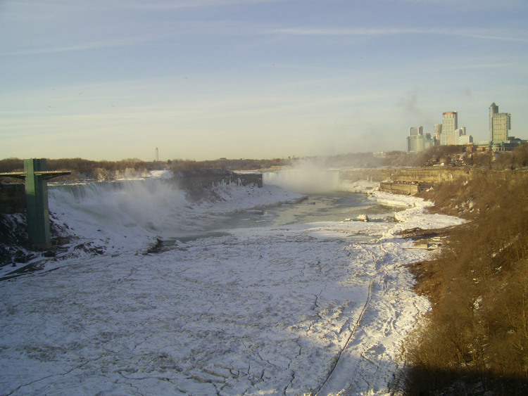 - en-CA Weather conditions in Niagara Falls when the photo was taken: -4º C Sunny Time: 8:27 a.m. Wind southeast, 10 km, gusts to 34 km This photo from Rainbow bridge, where concrete meets steel part of bridge.