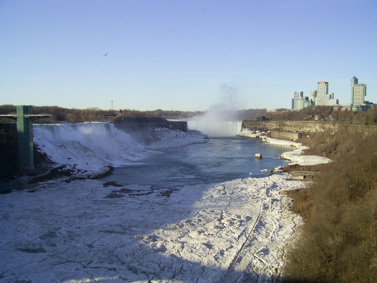 - en-CA Weather conditions in Niagara Falls when the photo was taken: 0º C Sunny Time: 8:24 a.m. Wind northeast, 16 km This photo from Rainbow bridge, where concrete meets steel part of bridge.