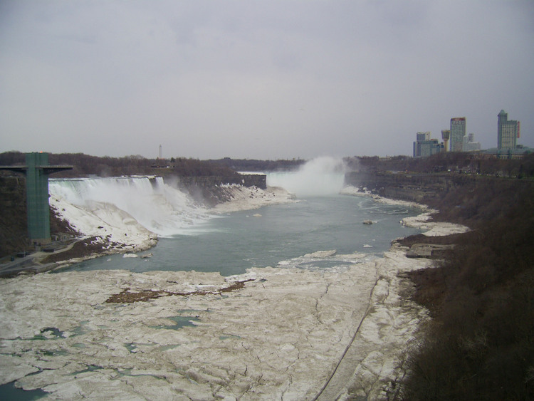 - en-CA Weather conditions in Niagara Falls when the photo was taken: 8º C Cloudy Time: 8:26 a.m. Wind southeast, 16 km This photo from Rainbow bridge, where concrete meets steel part of bridge.