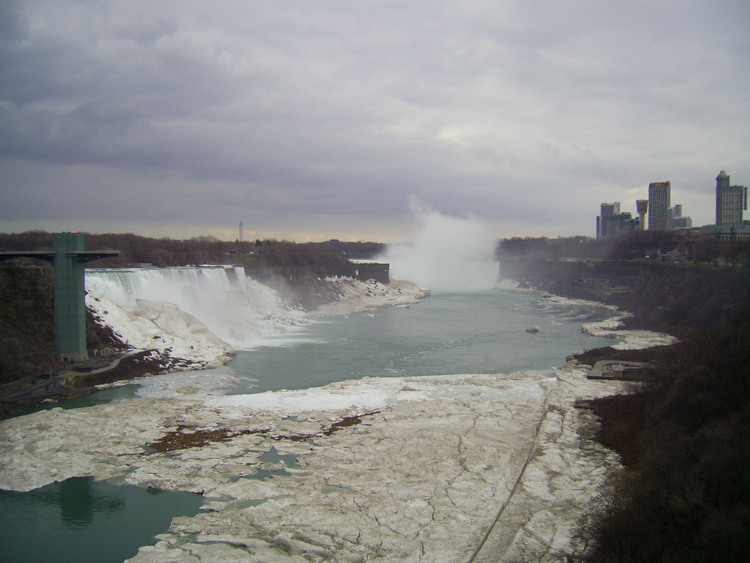 - en-CA Weather conditions in Niagara Falls when the photo was taken: 5º C Drizzle Time: 8:28 a.m. Wind southwest, 14 km, gusts to 48 km This photo from Rainbow bridge, where concrete meets steel part of bridge.