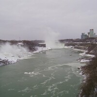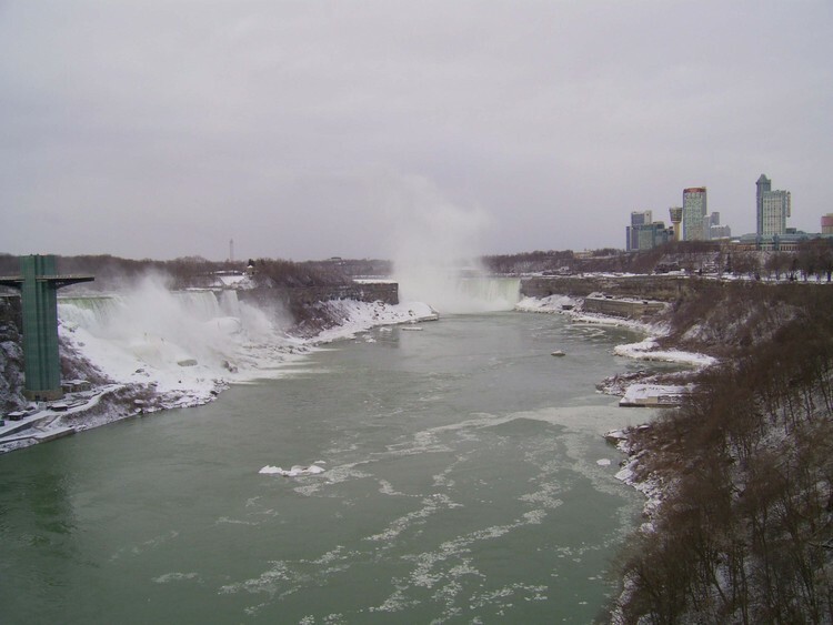 - en-CA Weather conditions in Niagara Falls when the photo was taken: -3º C Light snow Time: 8:24 a.m. Wind west, 21 km, gusts to 48 km This photo from Rainbow bridge, where concrete meets steel part of bridge.