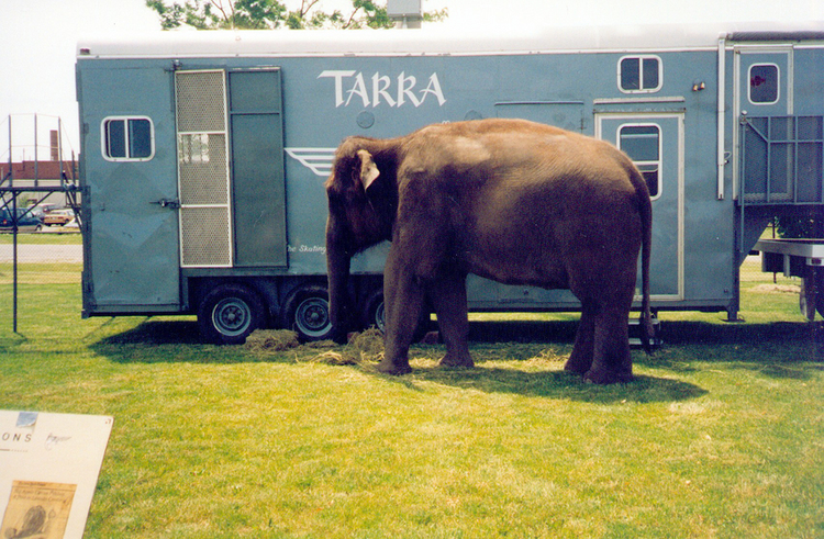 - Tarra the elephant relaxing at Optimist Park after marching in Canada Day Celebrations at Niagara Falls