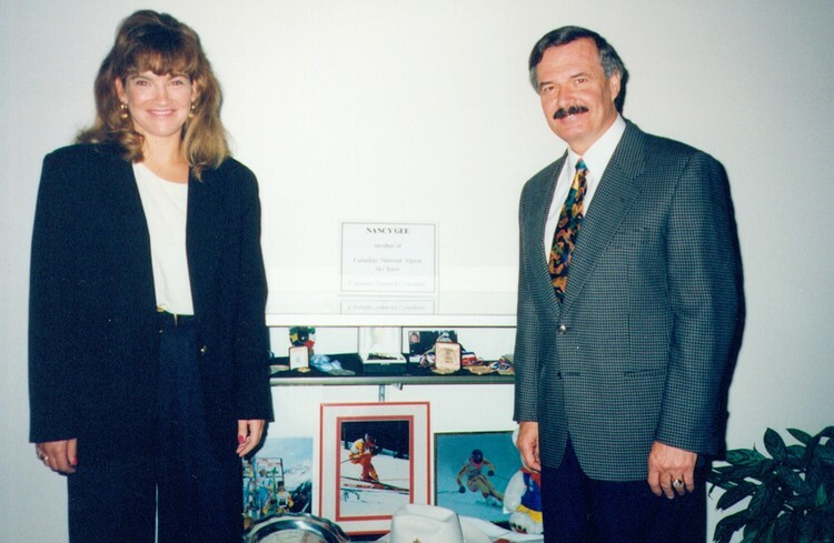 - Skier Nancy Gee with Mayor Wayne Thomson of the City of Niagara Falls