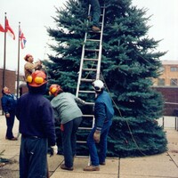 - City of Niagara Falls workers installing a Christmas Tree in Centennial Square