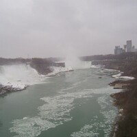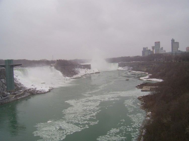 - en-CA Weather conditions in Niagara Falls when the photo was taken: -4º C Light snow Time: 8:23 a.m. Wind west, 13 km, gusts to 47 km This photo from Rainbow bridge, where concrete meets steel part of bridge.