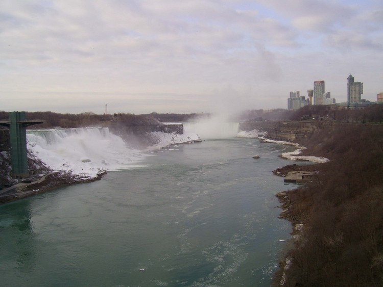 - en-CA Weather conditions in Niagara Falls when the photo was taken: 0º C Partly cloudy Time: 8:22 a.m. Wind west, 10 km This photo from Rainbow bridge, where concrete meets steel part of bridge.
