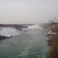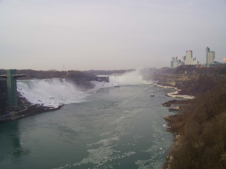 - en-CA Weather conditions in Niagara Falls when the photo was taken: 2º C Partly cloudy Time: 8:24 a.m. Wind east, 11 km, gusts to 42 km This photo from Rainbow bridge, where concrete meets steel part of bridge.