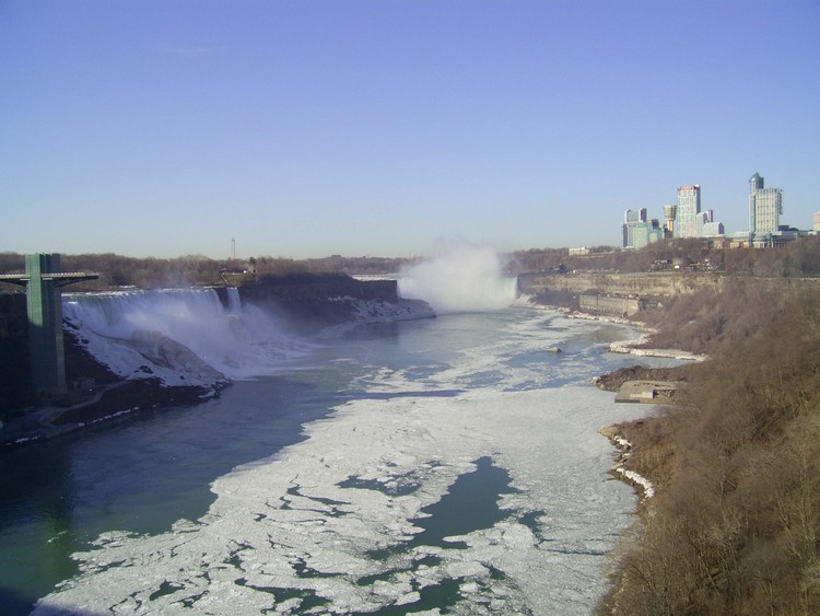 - en-CA Weather conditions in Niagara Falls when the photo was taken: 8º C Sunny Time: 8:22 a.m. Wind west, 3 km This photo from Rainbow bridge, where concrete meets steel part of bridge.