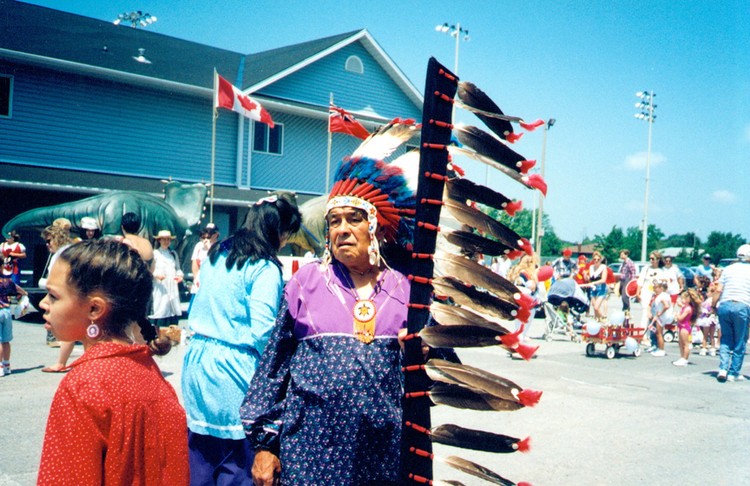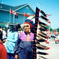 - Participant in the Canada Day parade at Niagara Falls wearing traditional North American Indian clothing