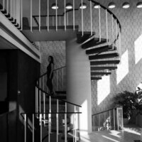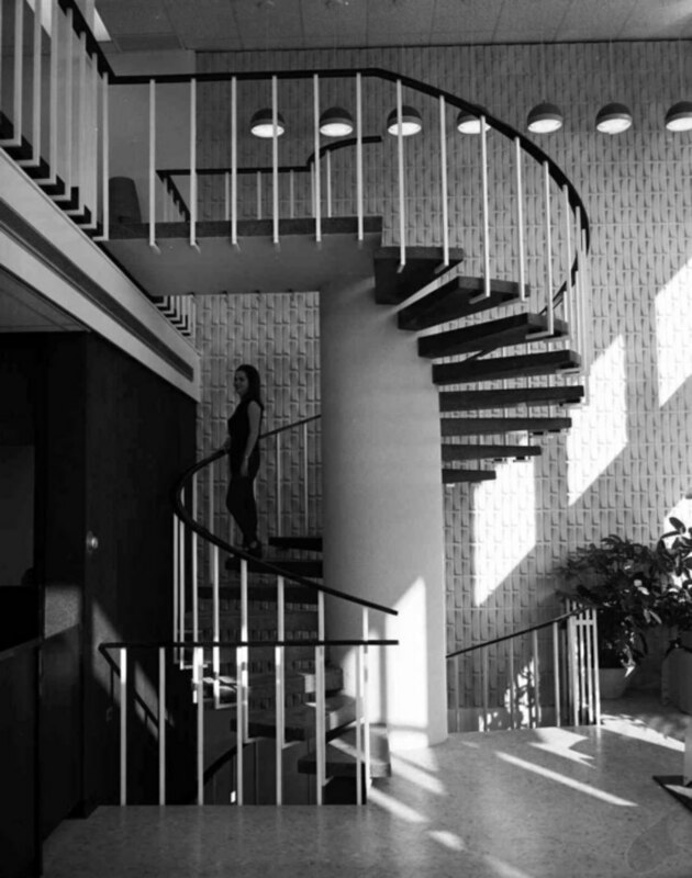 Young woman on the stairs in Lincoln Trust located on Queen Street.