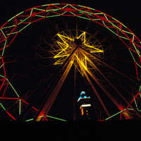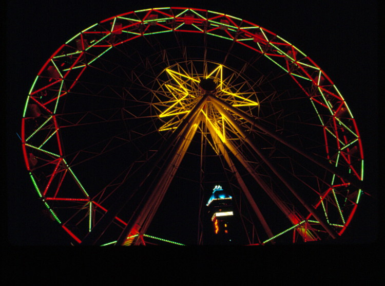 - Night view of the ferris wheel at Maple Leaf Village Niagara Falls - Maple Leaf Tower in background