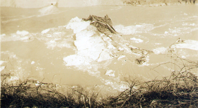 - en-CA A massive ice jam in January 1938 brought down the Upper Steel Arch Bridge. Traffic on the bridge was halted at 4 a.m. on January 27 and a death watch began. Bruce Leslie wrote in the Niagara Falls Review "at 9:30 o'clock the whole ice jam surrounding the rest of the wreckage shifted. Huge channels of water appeared ...At about 3:45 o'clock the final section broke away and floated down river...As it floated down river those watching on the gorge bank had to run to keep up with the speed of the river current moving the massive piece of ice which carried what remained of the bridge. It sank into the water opposite Otter Street on the Canadian side and Elmwood Avenue on the American side ;