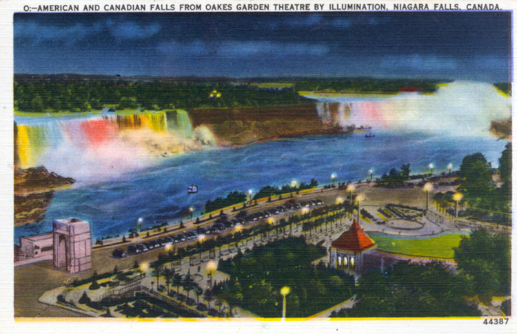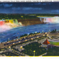 - American and Canadian [Horseshoe] Falls From Oakes Garden Theatre By Illumination, Niagara Falls, Canada