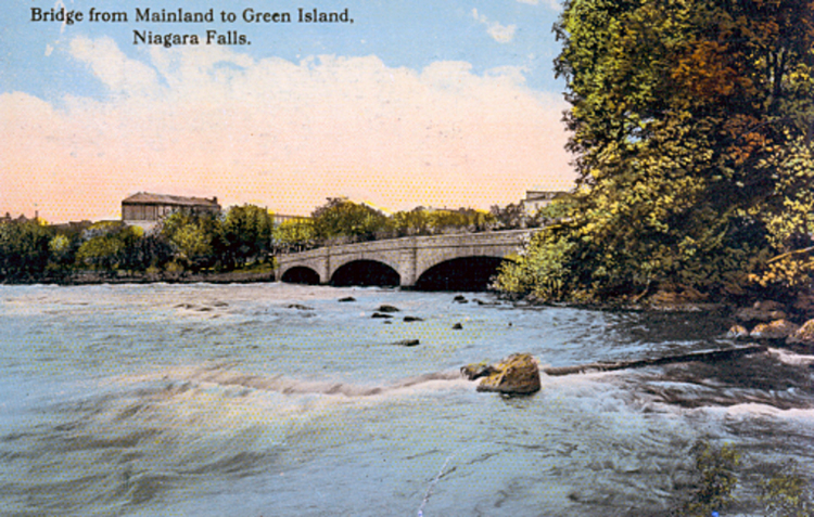 - en-CA Reverse reads Another beautiful architectural structure is the bridge to Green Island. From the island is a superior view of the rapids above the falls can be obtained ;