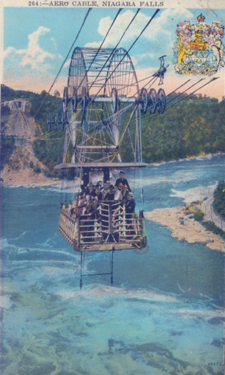 - en-CA Card was mailed in Niagara Falls Ontario on August 13th, 1928 to Mr A Buchenberg, Route 1, De Soto, Mo. ; message reads Saw this cable car cross here today, but it was too interesting to go over one. This is some fine trip for honeymooners. Alice ;