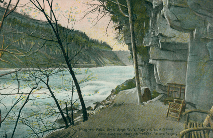 - Niagara Falls, Great Gorge Route, Niagara Glen, a resting place along the shore-path under the overhanging cliffs