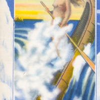 - en-CA Reverse reads LEGEND OF THE WHITE CANOE - Among the legends about Niagara, an interesting one represents the Indians as holding the Spirit of the Cataract in great awe and sacrificing a maiden of the tribe annually by sending her over the Falls in a canoe laden with fruits of the earth and chase, in the belief that such an offering would influence the spirit of the waters to favor the tribe in war and peace ;