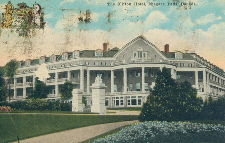 - en-CA In poor condition, post card was mailed in Niagara falls Ontario on August 26th 1919 to Mr Albert Price, General Delivery, Detroit, Michigan ; message reads "From Luella Price. Greetings from Canada. Am spending the day at the Falls and thought I would drop you a line. This is the hotel in which we ate dinner." ;