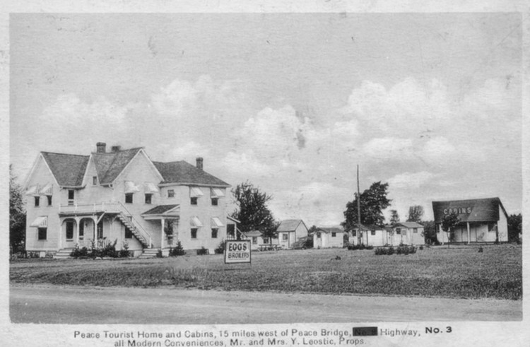 - Peace Tourist Home and Cabins, 15 miles west of Peace Bridge, highway no. 3. All modern conveniences. Mr and Mrs Y Leostic, Props.