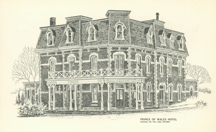 - en-CA Reverse reads Pictou and Queen Streets...Of Victorian architecture, the building was constructed in 1882 and was known as Long's Hotel and later as the Arlington Hotel. In 1912 the name was changed to the Prince of wales Hotel, following the investiture of the Duke of Cornwall as the Prince of Wales. Today it is one of the outstanding hotels in the Niagara area ;