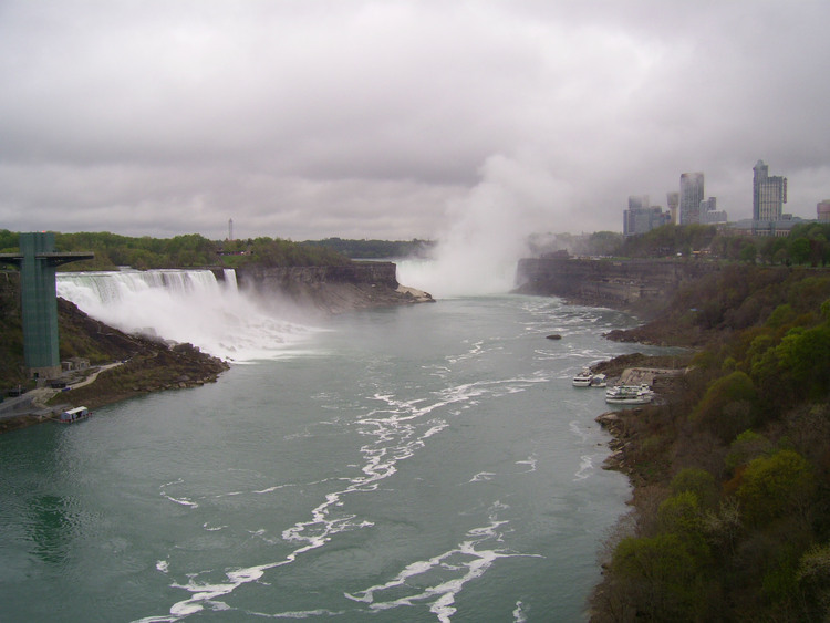 - en-CA Weather conditions in Niagara Falls when the photo was taken: 7º C Cloudy Time: 8:22 a.m. Wind north east, 3 km hour This photo from Rainbow bridge, where concrete meets steel part of bridge.