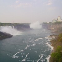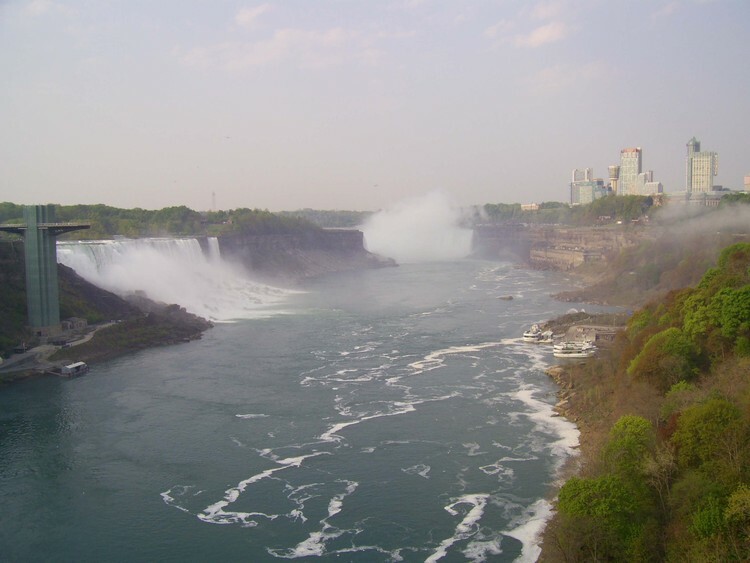 - en-CA Weather conditions in Niagara Falls when the photo was taken: 14º C Hazy Time: 8:23 a.m. Wind south, 14 km hour This photo from Rainbow bridge, where concrete meets steel part of bridge.