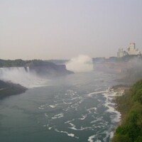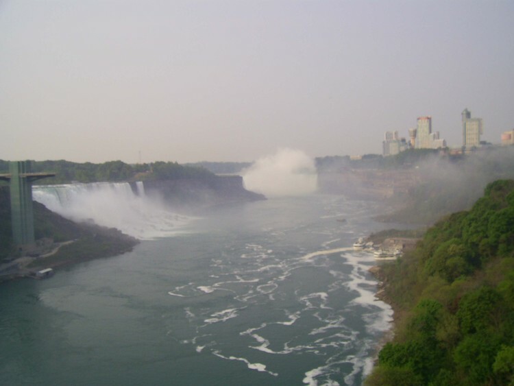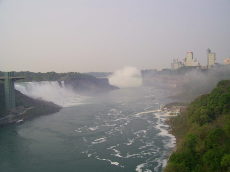 - en-CA Weather conditions in Niagara Falls when the photo was taken: 21º C Misty Time: 8:22 a.m. Wind south west, 11 km hour This photo from Rainbow bridge, where concrete meets steel part of bridge.