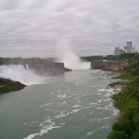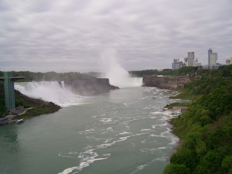 - en-CA Weather conditions in Niagara Falls when the photo was taken: 12º C Cloudy Time: 8:28 a.m. Wind west north west, 18 km hour This photo from Rainbow bridge, where concrete meets steel part of bridge.