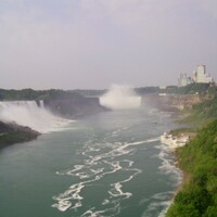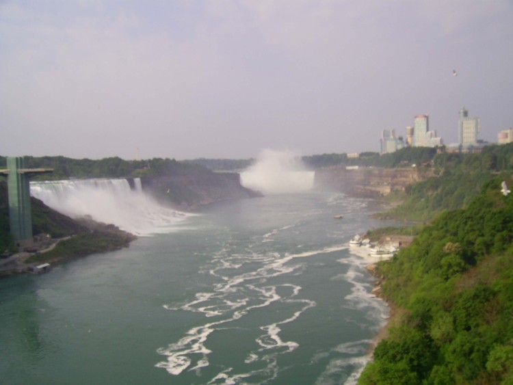 - en-CA Weather conditions in Niagara Falls when the photo was taken: 26º C Hazy Time: 8:30 a.m. Wind south south west, 21 km hour This photo from Rainbow bridge, where concrete meets steel part of bridge.