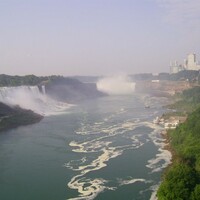 - en-CA Weather conditions in Niagara Falls when the photo was taken: 19º C Hazy Time: 8:17 a.m. Wind south west, 22 km hour This photo from Rainbow bridge, where concrete meets steel part of bridge.