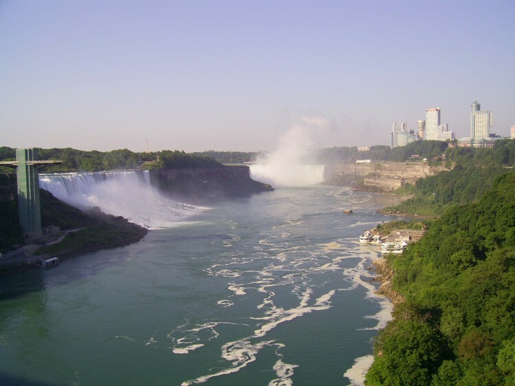 - en-CA Weather conditions in Niagara Falls when the photo was taken: 21º C Hazy Time: 8:12 a.m. Wind south, 7 km hour This photo from Rainbow bridge, where concrete meets steel part of bridge.